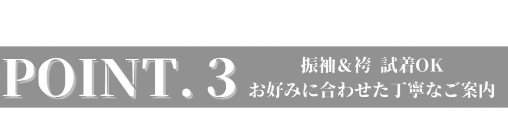 当日は、プライベートな空間でお客様のお好みに合わせて振袖・袴のご試着を行います。