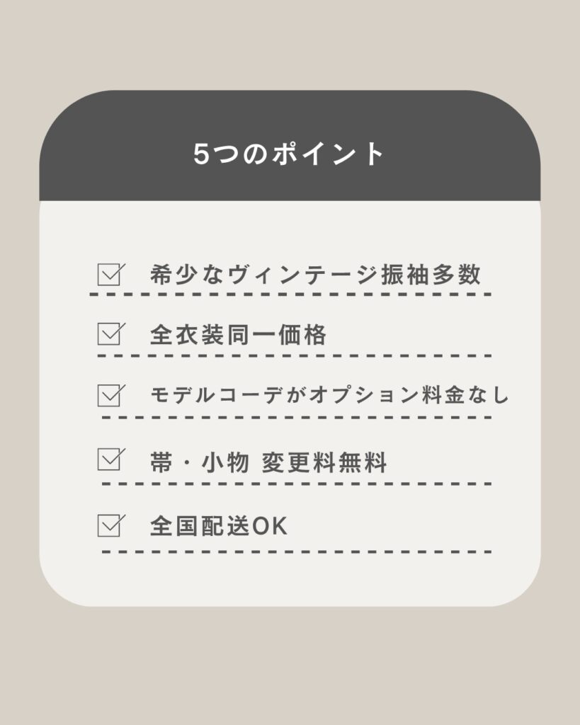 1着で二つのシーンを楽しめるのも、ヴィンテージ振袖レンタルならではの魅力です。