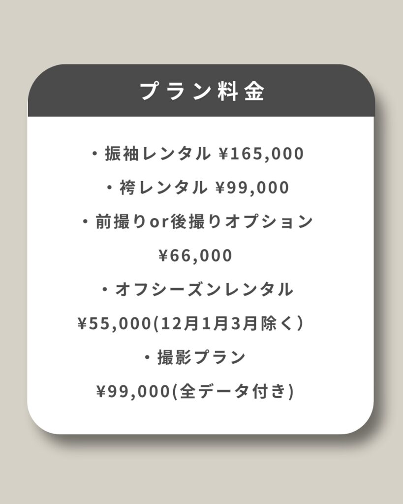 後日、レンタルプラン・撮影プランご契約のお客様は試着料実質¥0でご利用頂けます。